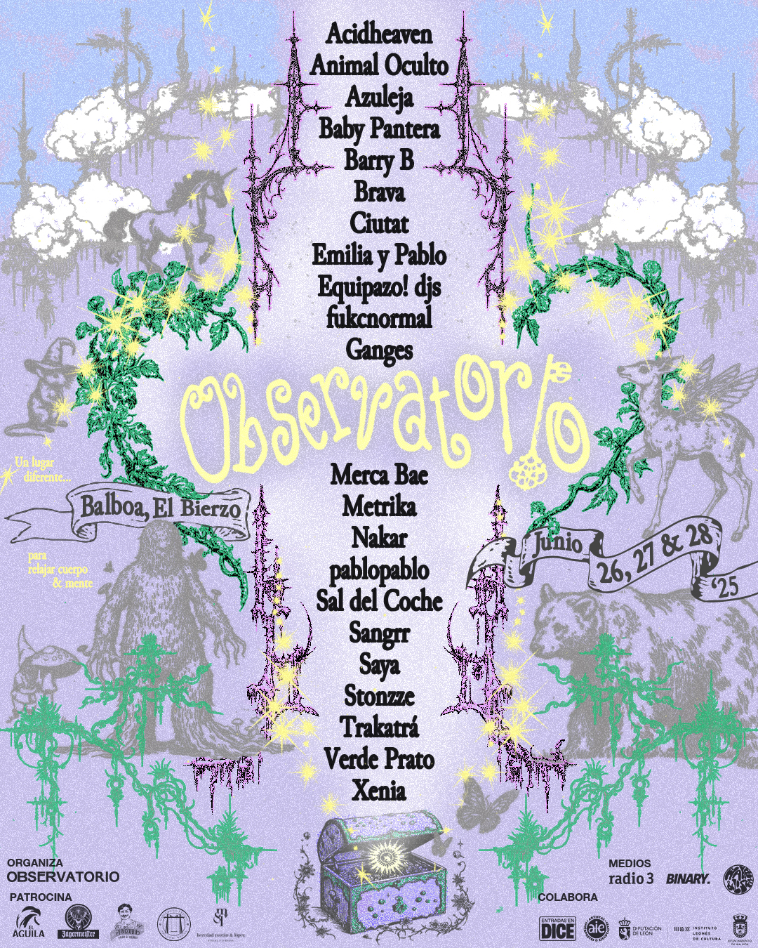 Mientras tanto, la edición de 2025 en Balboa seguía su curso y este ha sido un año en el que se han incorporado muchas y maravillosas personas a la familia organizativa. Esto nos permitió al resto del equipo vivir un festival más tranquilo, si es que esta palabra se puede usar cuando organizas Observatorio. Una comisión de cuidados presente y profesional y unos servicios e infraestructura mejor adaptados a las necesidades del festival también han contribuido a que 2025 haya sido una gran edición. Destacamos la participación de Barry B, que ya por aquellas fechas despuntaba en el panorama nacional, siendo ahora uno de los artistas más frescos y solicitados en la industria.